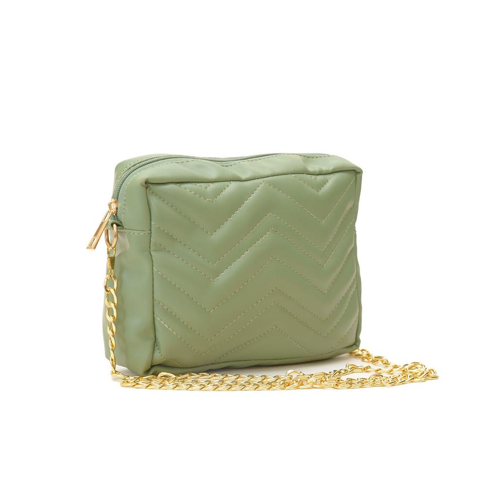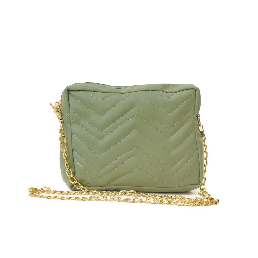 A small crossbody bag with a golden chain typically combines style and practicality. Its compact size makes it convenient for on-the-go use, while the golden chain adds a touch of elegance. The bag is versatile, suitable for various occasions, and the chain can be a chic accent that complements the overall design. The gold detailing often enhances the bag's aesthetics, making it a fashionable accessory. Additionally, the crossbody style ensures hands-free functionality, making it both trendy and functional