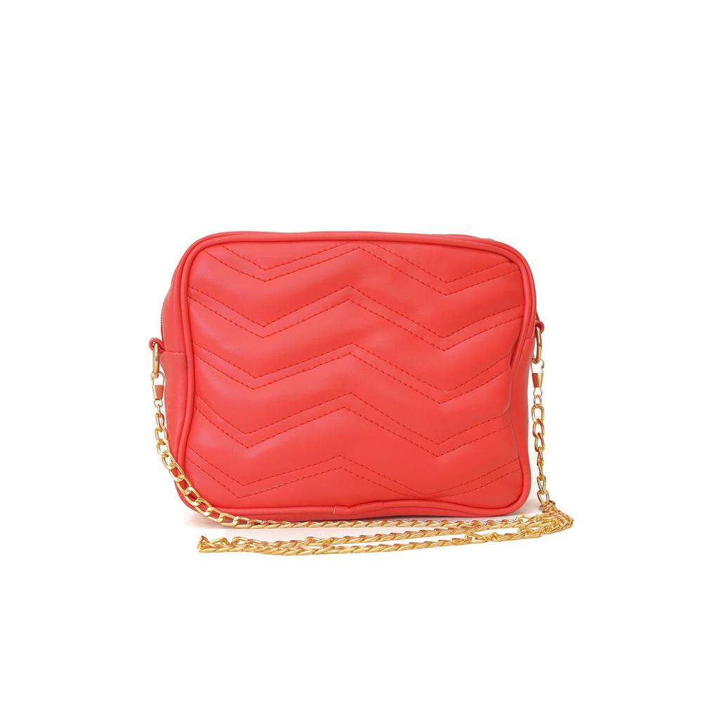A small crossbody bag with a golden chain typically combines style and practicality. Its compact size makes it convenient for on-the-go use, while the golden chain adds a touch of elegance. The bag is versatile, suitable for various occasions, and the chain can be a chic accent that complements the overall design. The gold detailing often enhances the bag's aesthetics, making it a fashionable accessory. Additionally, the crossbody style ensures hands-free functionality, making it both trendy and functional
