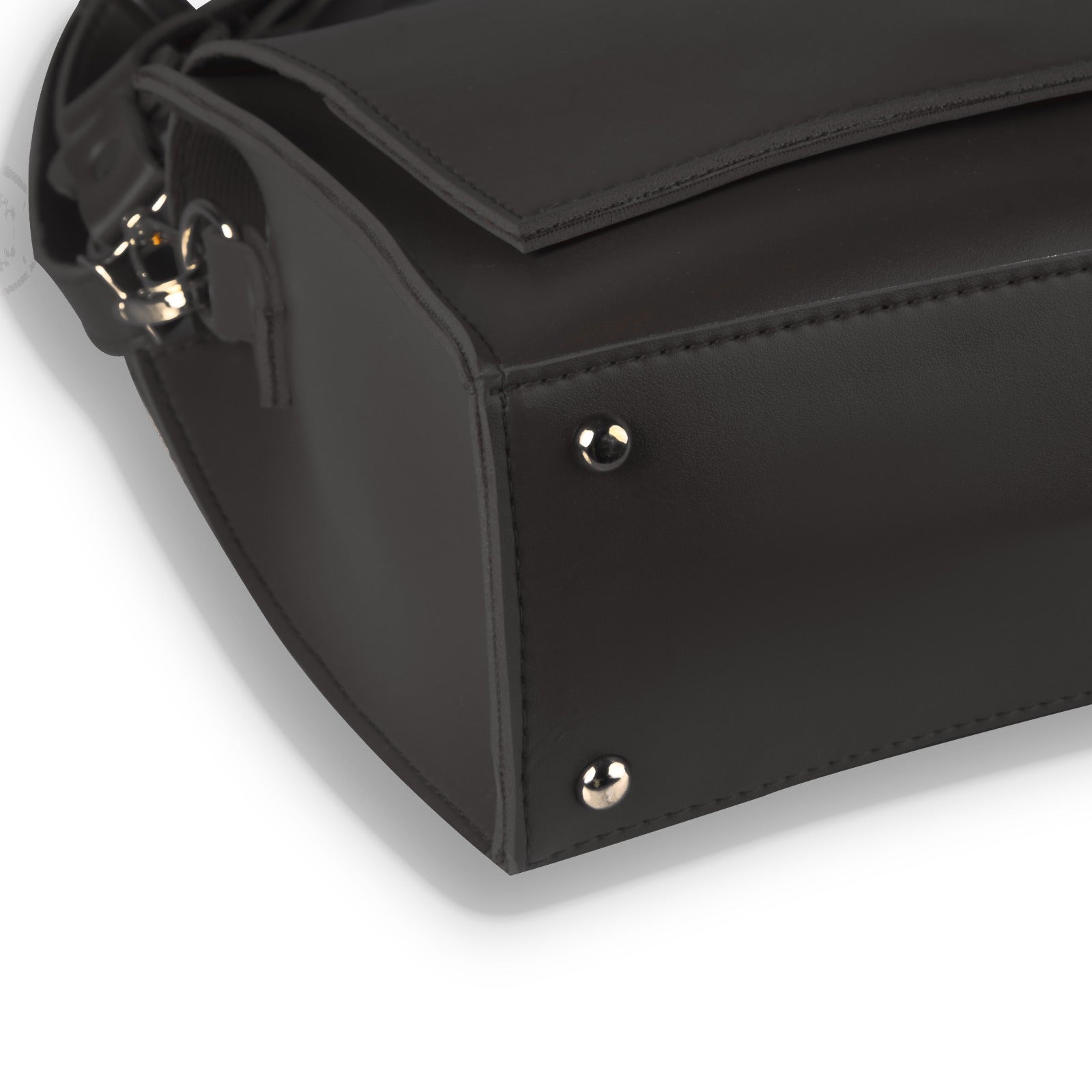 This Navan black Handbag is made from premium vegan leather, making it a lightweight and durable accessory. The spacious main compartment has a top zipper closure to securely store your items with ease. The additional studs at the bottom of the bag provide extra protection against scratches, making it perfect for everyday use and university life. Inside the compartment with zip closure allows you to synchronize your belongings. The front contrast black and white stripe makes this trendy bag more attractive and matches with your gorgeous outfits.