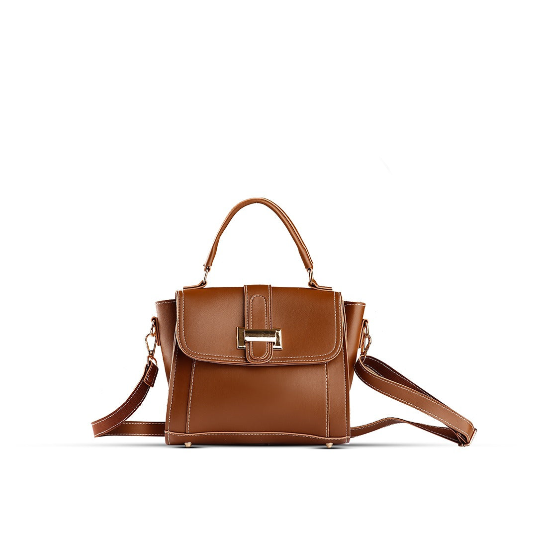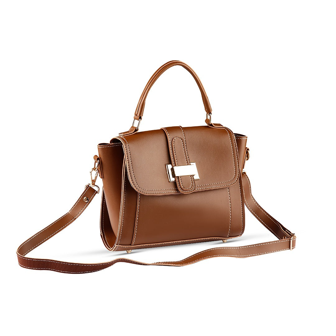 This elegant handbag features a chic two-tone color combination, perfectly complemented by a sleek golden buckle on the front. Its sophisticated design adds a touch of luxury, making it the ideal accessory for any occasion. Stylish and timeless, it's both practical and fashionable.