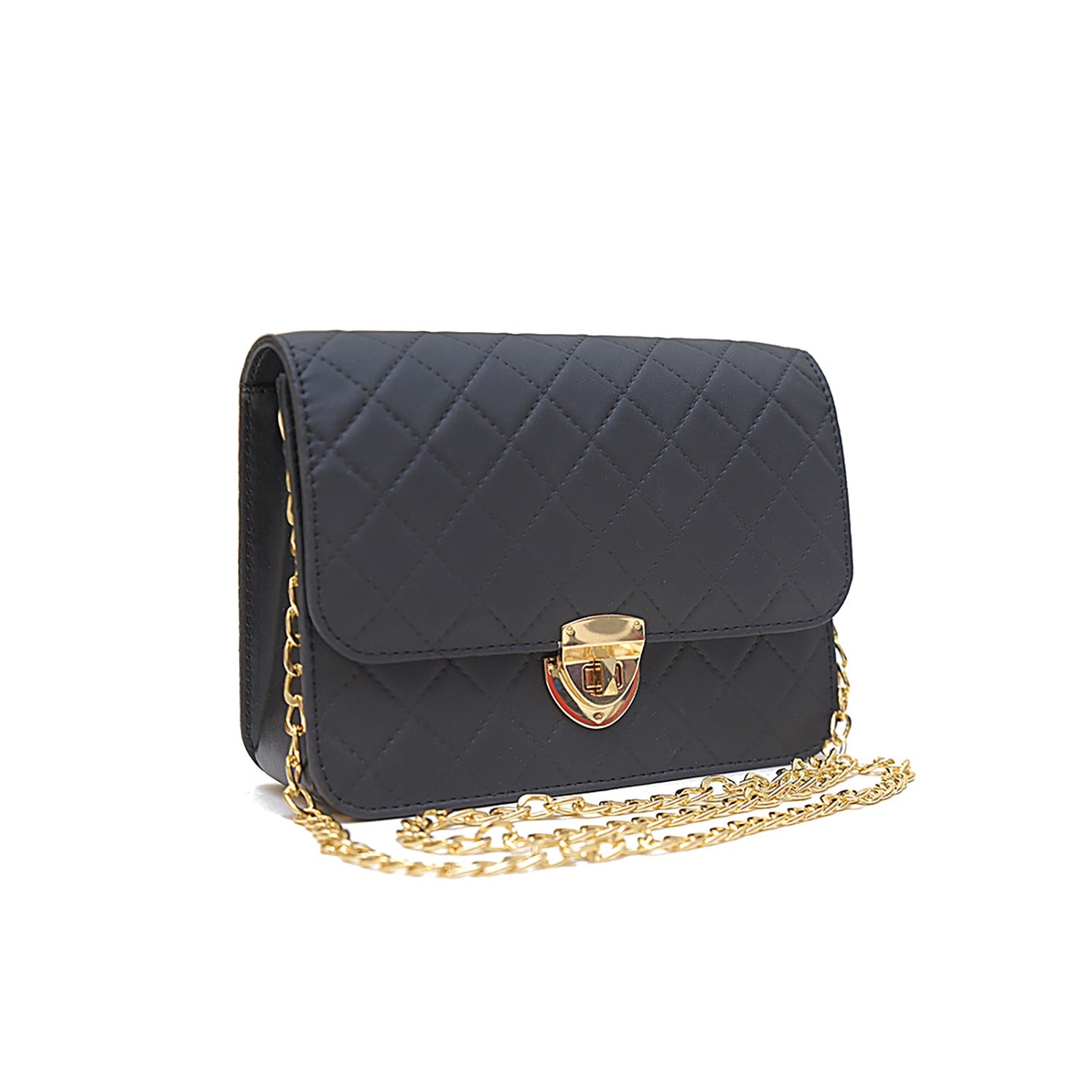 NORAH BLACK HANDBAG is a perfect blend of style and practicality. It's compact and easy to carry, making it ideal for a night out or special occasions. The golden chain adds a touch of elegance and can be worn as a shoulder bag or a crossbody for versatility.Its size is just right for your essentials like phone, wallet, and makeup. It's a fashion statement that complements your outfit and adds a touch of sophistication to your look."